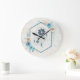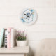 Blau und Aquamarine Blumengrafik, "Leben beleben" Große Wanduhr