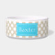 Blau und Beige Polka-Punkte-Muster mit Namen Napf