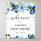 Blau und Blume der Marine Sweet 16 Willkommen Poster
