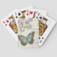 © Pela Studio/wildes Apple. Ein blauer und brauner Schmetterling mit einer lila Blume. Es gibt eine Schmetterlings-Silhouette im Hintergrund sowie in den französischen Wörtern.