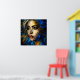 Ein faszinierendes Portrait einer schönen Frau. Ihre auffallend blauen Augen und die lebendigen roten Lippen strahlen in diesem abstrakten Meisterwerk. Goldene Linien zeichnen sich durch perfekte Konturen aus, während die Farbtöne königsblau und golden ein faszinierendes Farbspiel bilden. Das Kunstwerk erfasst das Wesen ihrer Schönheit in einer Symphonie von goldener Eleganz.