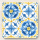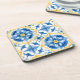 💛💙 Blau und Gelb, Aquarellblüten Azulejos Getränkeuntersetzer