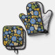 Blau und Gelb BlütenhandGezeichnet Ofenhandschuh & Topflappen-Set