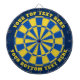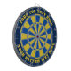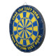 Blaue und gelbe Dartplatine mit zwei benutzerdefinierten Textbereichen. Sie können jede Farbe ändern, indem Sie auf die Schaltfläche Anpassen klicken.