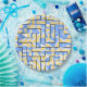 Ein farbenfrohes blau-gelbes Labyrinth ist ein lustiges Design für Kinder, Tagesbetreuer und Lehrer.