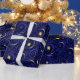 Weihnachtsgeschenkpapier | Blue on Blue (mit ein paar goldenen Schneeflocken eingestreut) Damast-Muster - dies ist Teil eines Mix und passt zu dem abgestimmten Weihnachtskollektionsdesign von WhimsicalArtwork™. Dieses Design sieht am besten aus dem glänzenden Verpackungszeitstil, dank der goldenen Snowflake-Sterne -