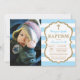 Blau-und GoldGlitzer-Taufe-Einladung mit kundenspezifischem Foto. Jungen-Taufe. Erste Kommunion. Taufe. Kinderwidmung. Blaue und weiße Streifen. Für weitere Kundenbezogenheit klicken Sie bitte "besonders anfertigen es" Knopf und benutzen unser Entwurfswerkzeug, um diese Schablone zu ändern.