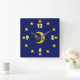 Blau-und Goldmond und Stern-Wanduhr Quadratische Wanduhr