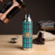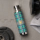 Ein türkisfarbener Untergrund, der von tiefblauem, massivem Grau und leuchtend orangefarbenen Bändern in diesem karierten, trendigen Farbenspiel und Kontrasten mit einem klassischen und gemütlichen Muster durchzogen wird. Passen Sie das Monogramm mit Ihrem Initial an, um eine Wasserflasche zu erstellen, die einzigartig für Sie ist.