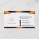 Dunkelblauer Hintergrund mit orangen und blauen Streifen. Die Vorderseite ist ein dunkelblauer Hintergrund. Die Rückseite ist weiß und enthält Ihre Informationen. Einfach und modern