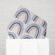 Gewebepapier mit einem niedlichen und skurrilen Regenbogen. Blau und pfirsichfarben.