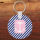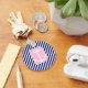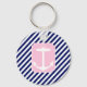Dieses niedliche und prächtige Design hat einen weißen Anker Silhouette ist in einem hellrosa Rahmen auf einem Hintergrund von diagonalen, nautisch marineblauen Streifen.