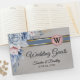 Dieses wunderschöne und elegante Gästebuchdesign besticht durch wunderschöne blaue und staubige rosafarbene Blume auf grauem Hintergrund, die von einem blau-goldfarbenen Metallband an der Spitze hervorgehoben werden. Vollständig anpassbar mit eigener Version. Siehe Koordinationselemente in dieser Auflistung.