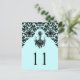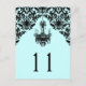 Diese aqua blauen und schwarzen Damast Tischnummer Postkarte passt zur Hochzeitseinladung unten gezeigt. *** Sie müssen die Nummer 11 zu jeder gewünschten Nummer ändern, in Ihren Warenkorb legen und dann zurückkommen und den Vorgang mit jeder Nummer wiederholen, die Sie benötigen. Wenn Sie Fragen haben, kontaktieren Sie mich unter niteowlstudio@gmail.com.