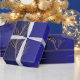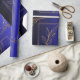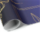 Dieses Verpackungspapier präsentiert ein modernes und minimalistisches botanisches Design mit zarten, in geometrischen Konturen gerahmten Blattgold. Set vor einem reichen Hintergrund mit zwei Farbtönen in Blau und Schwarz, die aufwändigen Goldakzente tragen zu einer Touch von Eleganz und Luxus bei. Die dekorativen Schnörkel in den Ecken verstärken das reguläre Ambiente des Designs und machen es zu einem idealen Ort für formelle Anlässe, Luxusgeschenke oder elegante Feiern. Der Kontrast des kühnen Hintergrundes mit der feinen Goldverzierung schafft einen auffallenden visuellen Effekt, ideal für diejenigen, die eine schlichte Eleganz suchen.