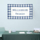 Helfen Sie Ihren Gästen, Ihr Party mit einem individuellen Banner zu finden, der einen klassisch blauen und weißen Büffel-Karo-Rand mit dem Text in einem weißen Rechteck in der Mitte enthält. Ideal für Wiedersehen, Grill oder Picknick. Personalisieren Sie es in der Sidebar. Klicken Sie auf den Link Rocklawn Arts Collection, um die Party-Vorräte zu koordinieren. Copyright ©Claire E. Skinner. Alle Rechte vorbehalten.