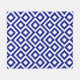 Dieses gewagte, blau-weiße geometrische Muster ist ein originelles Dekorationsdesign. Weiße Mäander drehen um dunkelblaue Diamanten mit weißen Diamanten. Lebhafte blaue Zickzacksäcke sorgen für eine feine Trennung zwischen den gewundenen Pfaden. Digitales Bild. Copyright © 2013 Claire E. Skinner. Alle Rechte vorbehalten.
