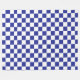 Abstrakte digitale Kunst von blau-weißen Quadraten in einer karierten Formation.