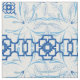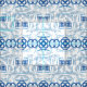 Blau und Weiß Chinoiserie Muster mit geometrischen und botanischen Blume und Blätter.