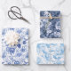 Umhüllungspapier aus blau-weißer Blume. Drei verschiedene Muster.