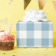 Hellblaues und weißes Gingham-Muster, das Papier in großem Maßstab verpackt. Geeignet, um Geschenke für verschiedene Anlässe zu dekorieren.