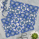 Elegantes Gewebe-Papier-Design mit einem nahtlosen Damastmuster in Blau und Weiß.