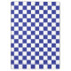 Abstrakte digitale Kunst von blau-weißen Quadraten in einer karierten Formation.