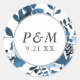 Blau und Weiß mit Monogramm Hochzeit Runder Aufkleber
