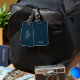 Dieses moderne Gepäckanhänger-Design zeichnet sich durch einen dunkelmarineblau-blauen Hintergrund aus. Ihre Initialen in fett weißem Text sorgen für ein schlichtes, stilvolles und dennoch berufliches Aussehen.