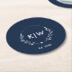 Blau und Weiß | Monogram für moderne Initials Runder Pappuntersetzer