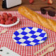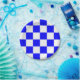 Papierplatte mit blau-weiß kariertem Muster. Ideal für jede Ansammlung.