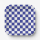 Abstrakte digitale Kunst von blau-weißen Quadraten in einer karierten Formation.