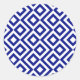 Dieses gewagte, blau-weiße geometrische Muster ist ein originelles Dekorationsdesign. Weiße Mäander drehen um dunkelblaue Diamanten mit weißen Diamanten. Lebhafte blaue Zickzacksäcke sorgen für eine feine Trennung zwischen den gewundenen Pfaden. Digitales Bild. Copyright © 2013 Claire E. Skinner. Alle Rechte vorbehalten.