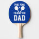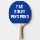 Ein blaues und weißes Tischtennispongpaddel mit Text, den Sie anpassen können. Vater Regeln! Wenn Ihr Vater gerne spielt, Leckerei ihn zu diesem Tischtennis-Paddel heute. Es ist schon sein Name darauf got!