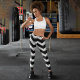 Geometrisches chevrons Formmuster in Schwarz-Weiß auf einem Capri Leggings für Frauen.