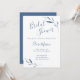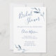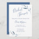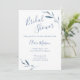 Freuen Sie sich auf ein Brautparty mit dieser eleganten Brautdusche in Blau und Weiß. Designed blue verzweigt auf einem weißen Hintergrund, der Text enthält: Name, Ereignisdatum, Uhrzeit und Position der Brücke. Auf der Rückseite auf blauem und weißem Hintergrund sind die UAWG Details enthalten. Um Ihre persönlichen Wünsche zu erfüllen, fügen Sie einfach Ihren Text in unsere einfache Vorlage ein und ersetzen Sie das Beispiel. Stellen Sie sicher, dass Sie die komplette Blue und White Watercolor Wedding Stationery Collection sehen.