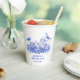 Diese Tee-Party-Becher aus Brautparty haben ein monochromes Design mit einem blau-weiß-Tee-Set umgeben von Blume. Sie können mit einem Namen und Datum personalisieren.