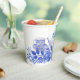 Diese Tee-Party-Becher aus Brautparty haben ein monochromes Design mit einem blau-weiß-Tee-Set umgeben von Blume.
