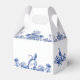 Schaffen Sie schöne personalisierte Gastgeschenk Hochzeit-Boxen, die so gestaltet sind, dass sie wie antike China aussehen. Sie sind mit einem blauen und weißen Blumenmotiv mit Vögeln versehen und sind bereit, mit den Namen der Braut und des Bräutigams und dem Hochzeitstag personalisiert zu sein.