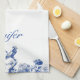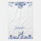 Kreieren Sie ein personalisiertes Geschenk mit einem eleganten Look. Dieses Küchentuch hat blaue und weiße Blumenbilder mit einem Vogelakzent, der so gestaltet ist, dass er wie ein Geschirr aus Vintager China aussieht. Es ist bereit, mit einem Namen in passender blauer Schrift personalisiert zu sein.