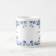 Kreieren Sie ein personalisiertes Geschenk mit einem eleganten Look. Diese Kaffee-Tasse ist mit blauen und weißen Blumenbildern mit einem Vogelakzent versehen, der so gestaltet ist, dass er wie Vintage China-Geschirr aussieht. Es ist bereit, mit einem Namen in passender blauer Schrift personalisiert zu sein.