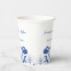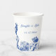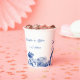 Entwerfen Sie personalisierte Papiertassen, die antike China haben. Dieser Papierbecher ist bereit, mit den Namen der Braut und des Bräutigams und ihrem Hochzeitsdatum personalisiert zu sein oder mit Ihrer eigenen, individuellen Nachricht. Es ist mit einem blauen und weißen Blumenmotiv und einem Vogelmotiv ausgestattet, das wie traditionelle China-Teller für Party mit elegantem Aussehen aussieht.