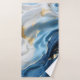 Blau, Weiß, Goldmarmor auf Seide Badhandtuch Set