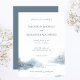Blauer und weißer Wasserfarben Hochzeitsempfang mit UAWG entworfen mit einer Winterlandschaft in blau-weiß Aquarellen. Der erste Text enthält: die Namen der Braut und des Bräutigams, das Hochzeitdatum, die Uhrzeit, den Ort, die Angaben zum Empfang und die UAWG. Die Rückseite ist ein blauer Hintergrund, der der Textfarbe entspricht. Zum Personalisieren fügen Sie einfach Ihren Text in unsere einfache Vorlage ein und ersetzen das Beispiel. Schauen Sie sich unbedingt die gesamte Blue und White Watercolor Wedding Collection an, um passende Karten und Accessoires zu erhalten.
