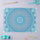 Dieses auffallende mandalanische Design strahlt in coolen Blau-, Aqua- und Weißtönen aus und bildet konzentrische Kreise komplizierter geometrischer Symmetrie. Jede Ebene zeigt detaillierte Motive, die wie Wellen nach außen reißen und dabei eine scharfe Präzision mit fließender Bewegung verbinden. Die eisige Palette schafft ein Gefühl von Ruhe, Klarheit und Tiefe, das die Ruhe des Wassers und des Winterhimmel weckt. Die nahtlose kreisförmige Anordnung zeichne das Auge in Richtung Zentrum und schafft einen faszinierenden Brennpunkt, der Stille und Bewegung gleicht. Ideal für diejenigen, die geometrische Mandalase, coole Designs und Ziermuster genießen, die sich erfrischend, ruhig und zeitlos fühlen.