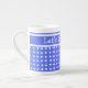 Eine schicke, anpassbare, Knochen-China Coffee Tasse, mit einem blau-weißen Polka Dot Design, das von Judy Adamson digital erstellt wurde.