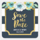 Blau Weiß und Imitate Gold Floral Save the Date Quadratischer Aufkleber