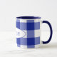 Blau-weiße Büffel kariert mit personalisiertem Namen. Der Name kann bearbeitet oder gelöscht werden.