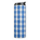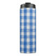 Blau-weiße ausgekleidete Esskleider. Thermosbecher