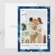 Senden Sie warme Wünsche im winterlichen Stil mit dieser eleganten blauen Schneekristall-Weihnachtskarte. Mit einem reichen, navyblauen Farbverlauf im Hintergrund, der mit zarten weißen Schneeflocken und sanften Bokeh-Akzenten bestreut ist, rahmt diese Karte Ihr Lieblingsfamilienfoto in einem modernen, festlichen Layout. Die Vorderseite enthält editierbaren Text, um Ihre Weihnachtsgrüße und Unterschrift zu personalisieren – egal, ob Sie als Paar, Familie oder Haushalt feiern.